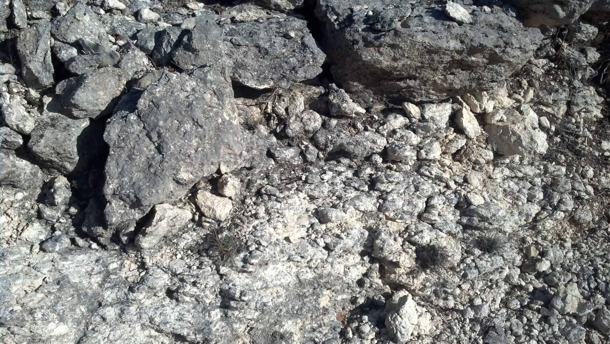 This is the edge of the road, cut into the hill, up the tallest hill (“the moutain”) on the ranch. Even a glance can reveal several fossils, though it’s harder to see them in a flattened image. Give it a try: