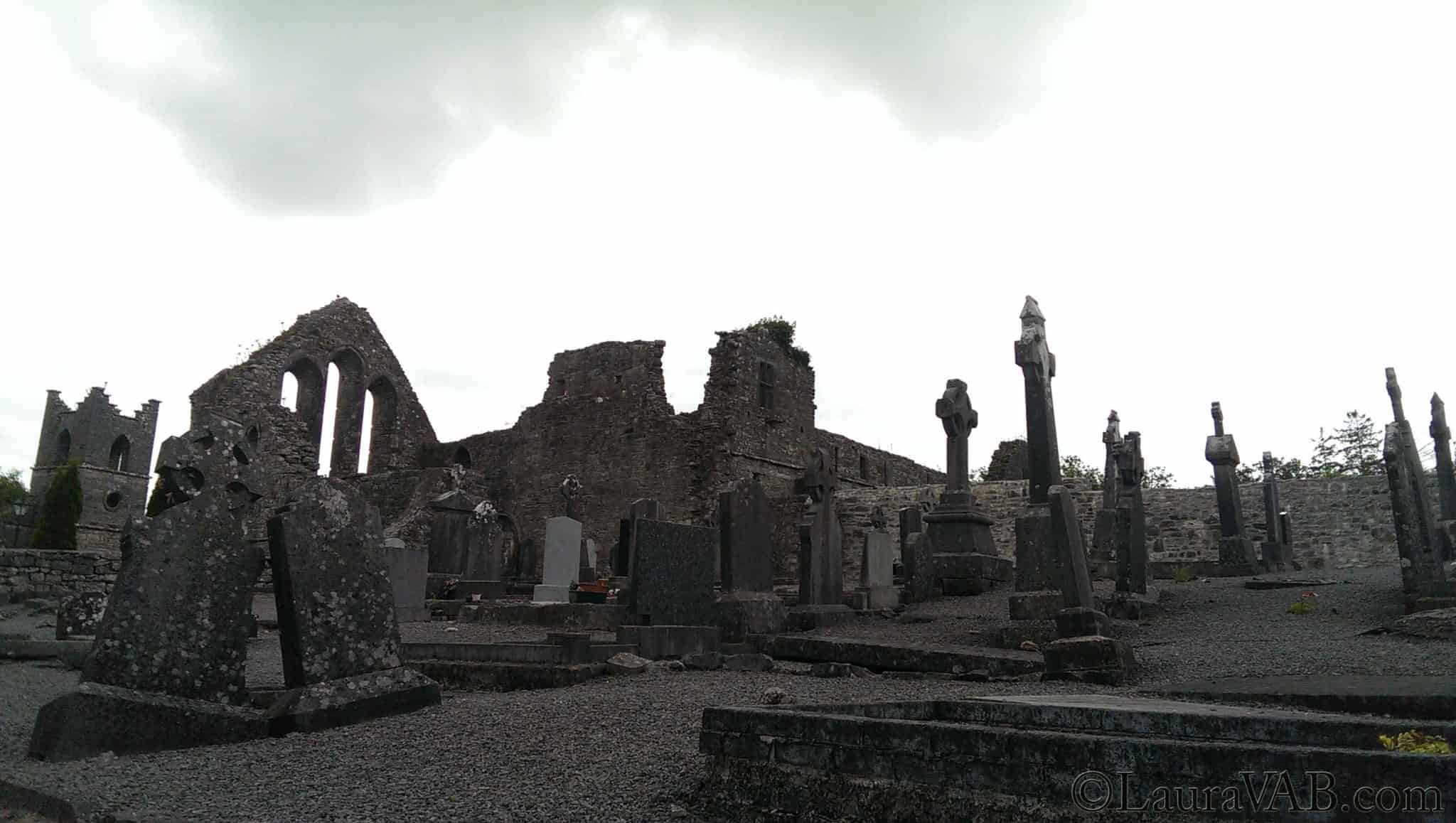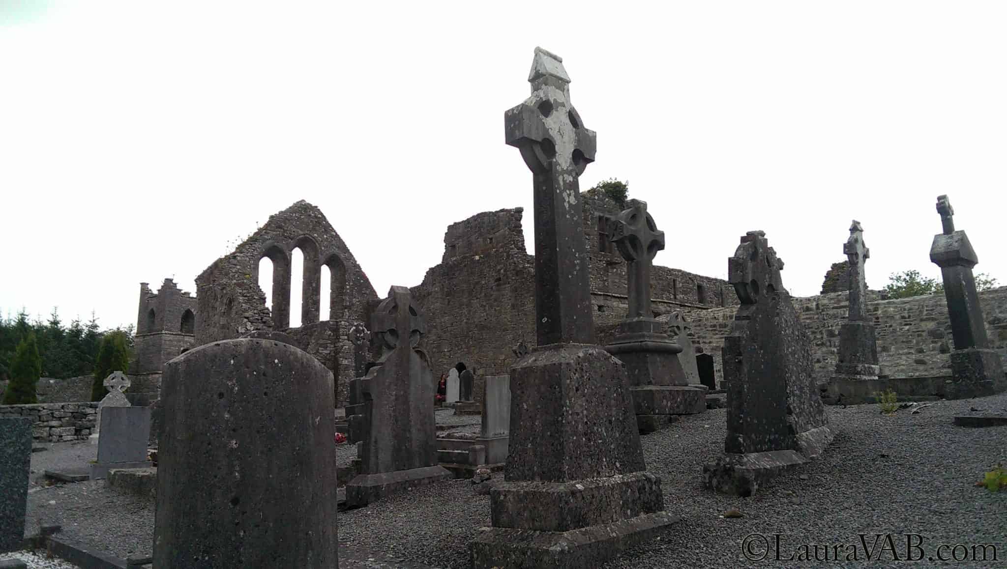 We walked past a string of yew trees, traditionally sacred to the druids and important in Irish Christian tradition as well, and past the remains of a house which once belonged to the highwayman of Cong. George McNamara was either a vicious thief or a good-hearted Robin Hood type, depending on whom you might believe, but he was definitely a highwayman. He used to host parties and then, while his peers were eating and drinking, he would go to burgle their houses. He had one or two companions who rode out with him, but his most famous associate was his horse Venus, who is reported to have viciously defended McNamara from pursuers — though not often, as McNamara supposedly shod Venus backwards, so that those following the tracks of the highwayman would go the wrong direction. McNamara died in 1760.