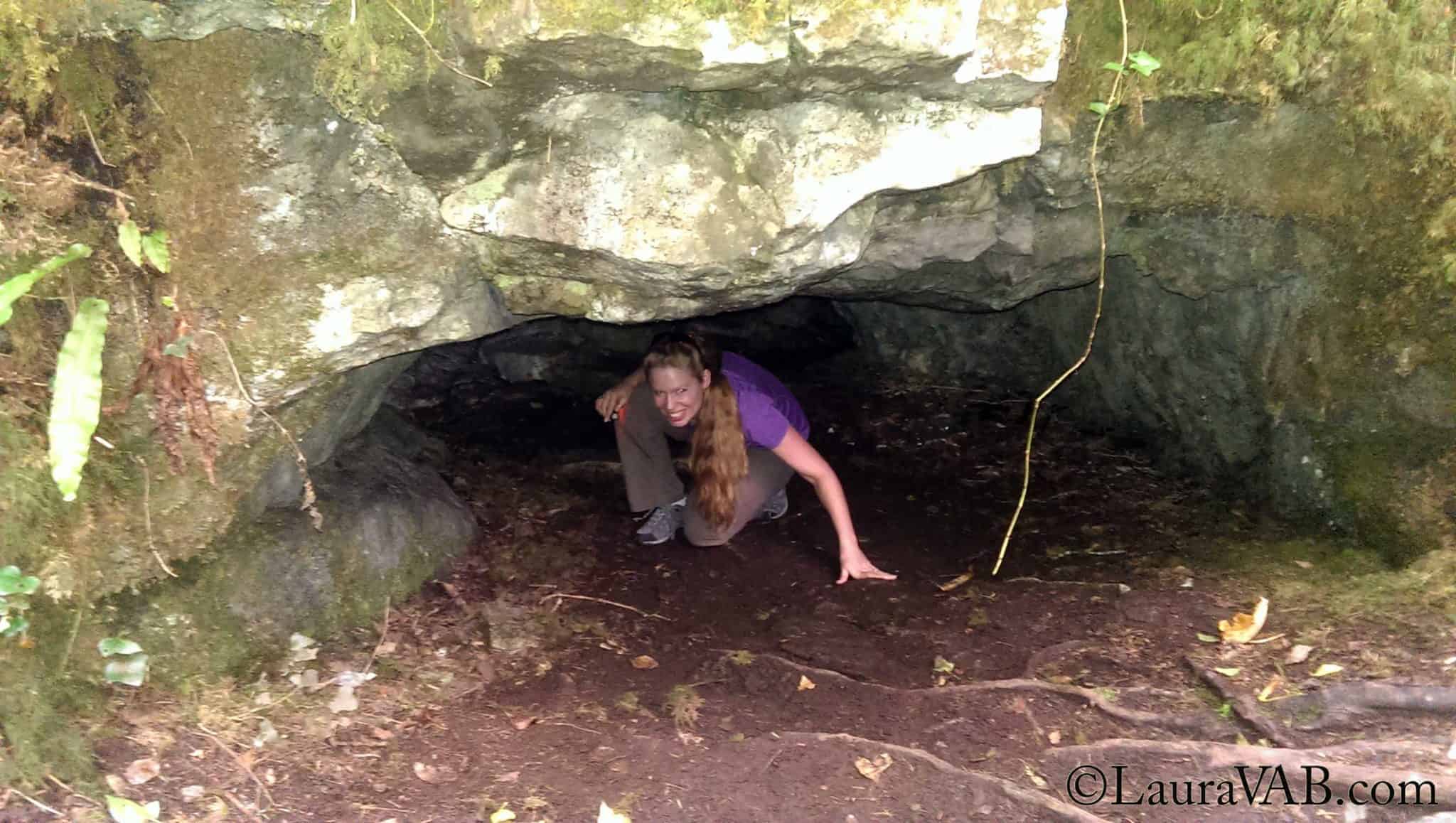 Eventually we came to Captain Webb’s cave, or “swallow hole.” It’s a steep chasm and the site of a nasty legend. Captain Webb (or possibly Captain Fitzgerald with a nickname due to a physical abnormality) had the unpleasant habit of raping and murdering women, bringing them into the woods and then discarding them into this hole to die when he was done. He got away with this a dozen times, because who could hear his victims calling for help even if they survived the fall?