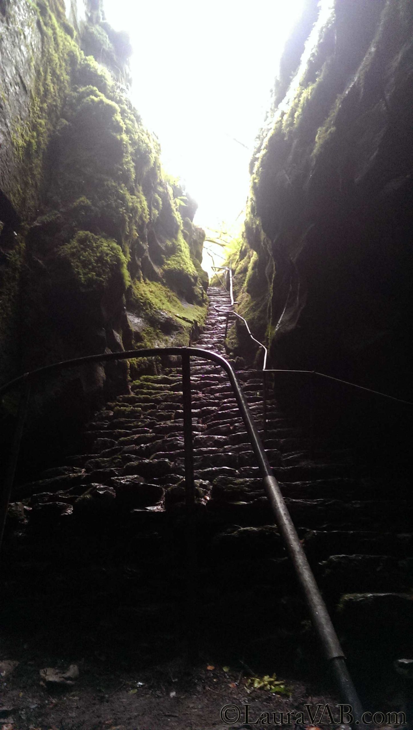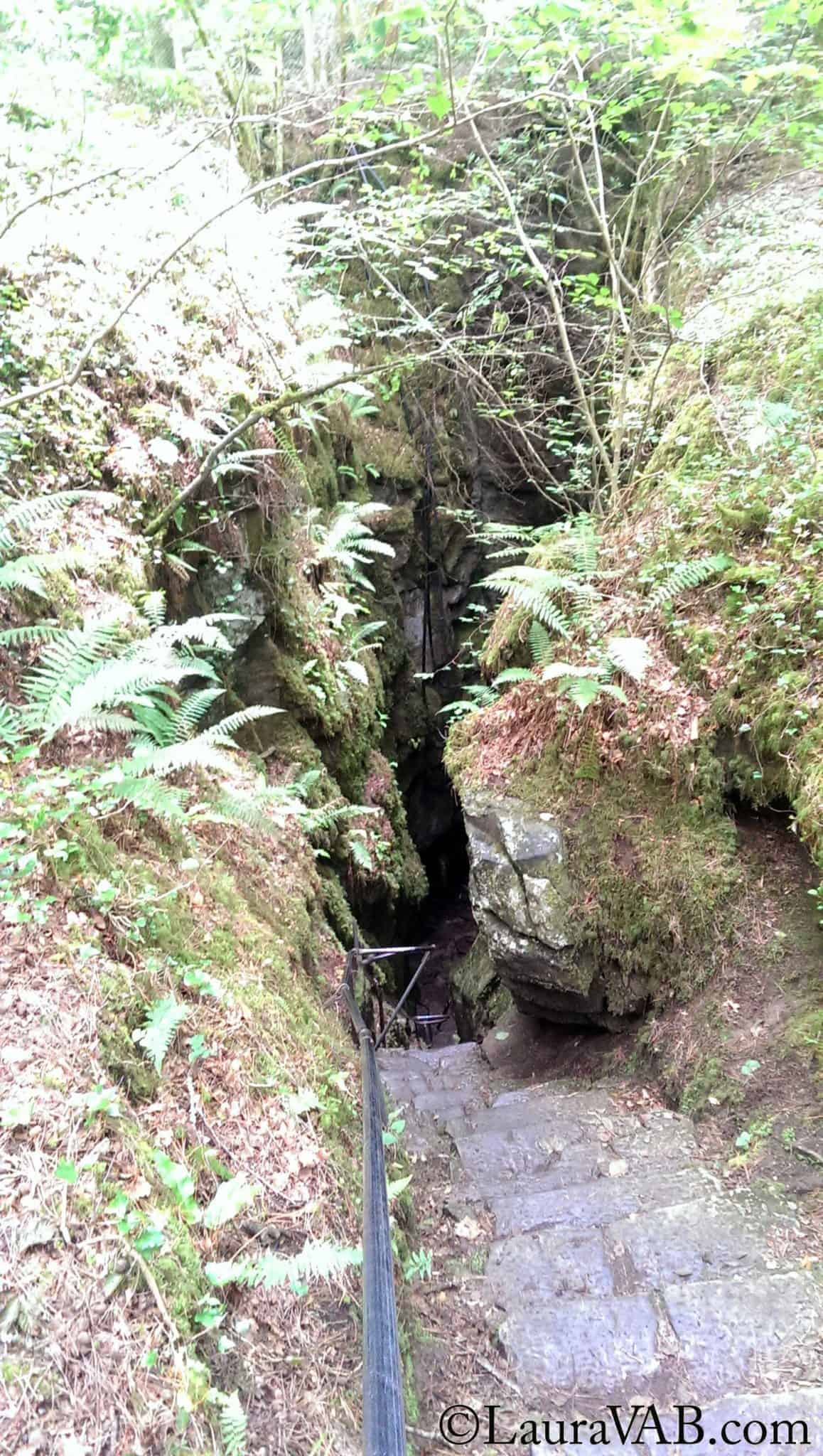 Eventually we came to Captain Webb’s cave, or “swallow hole.” It’s a steep chasm and the site of a nasty legend. Captain Webb (or possibly Captain Fitzgerald with a nickname due to a physical abnormality) had the unpleasant habit of raping and murdering women, bringing them into the woods and then discarding them into this hole to die when he was done. He got away with this a dozen times, because who could hear his victims calling for help even if they survived the fall?