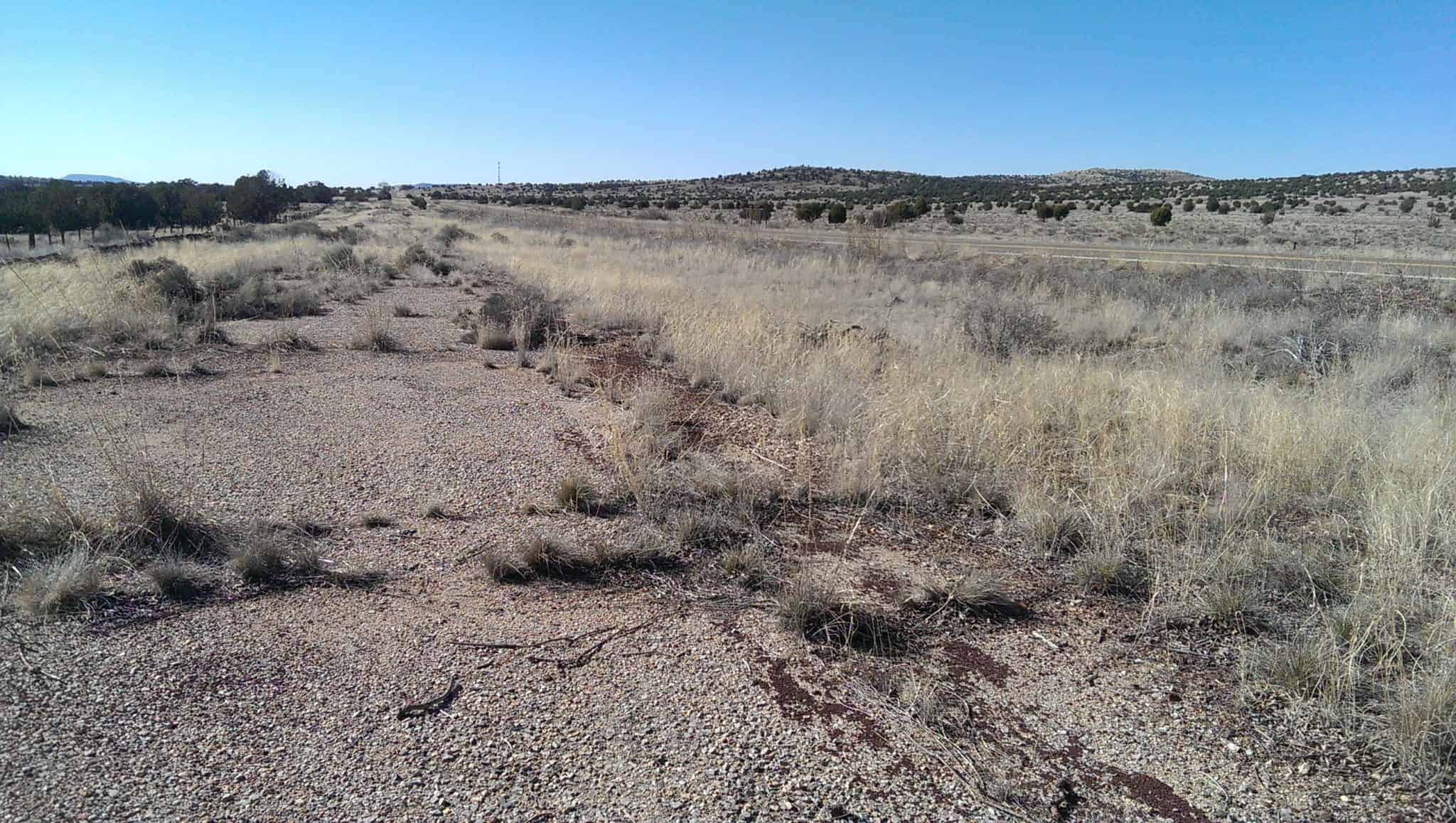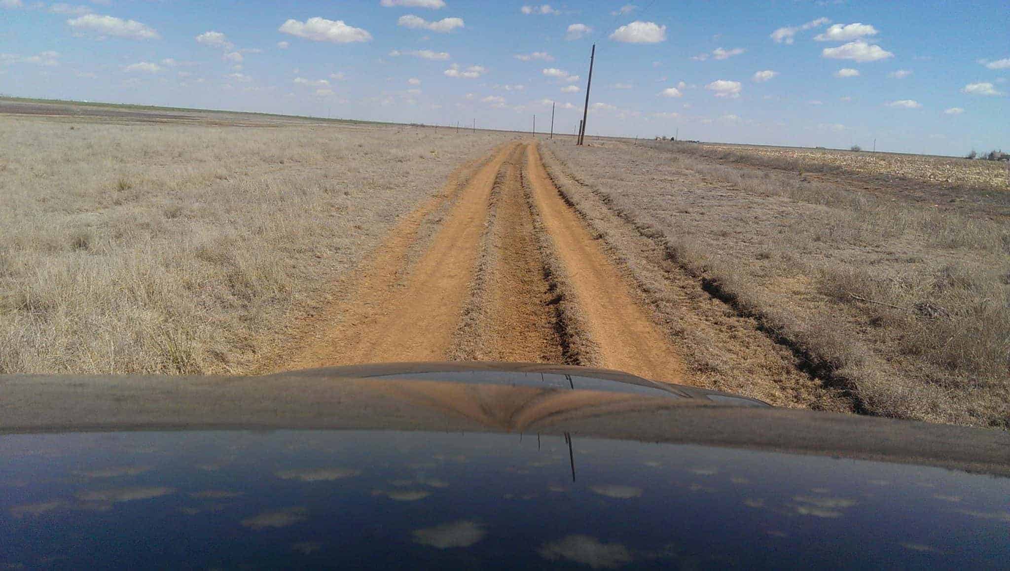 the Cuervo Cutoff, two dirt tracks running off into tall grass