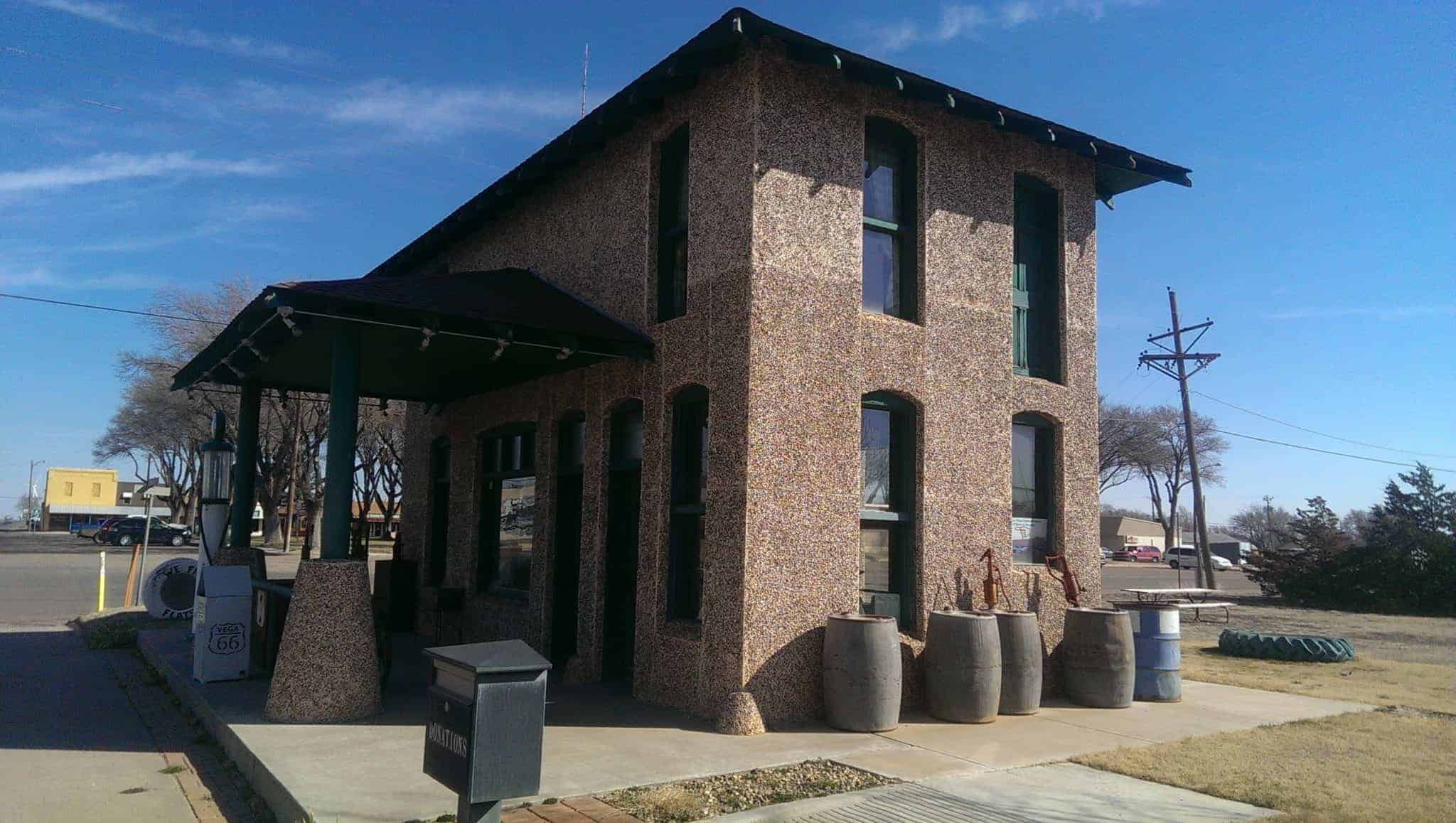 Shamrock is famous for the U-Drop Inn, a gorgeous Art Deco Conoco station, now the Chamber of Commerce with six Tesla Supercharger spaces in its lot. There are lots of 66-related souvenirs and books inside, and a little cafe still selling snacks, and some of the friendliest aides you’ll find on the road. Be sure to ask them how to get to the restored Magnolia Station, which looks almost as cute as the U-Drop, and the local park, where you can find a piece of the Blarney Stone. (I kissed it — is it helping the blog?)