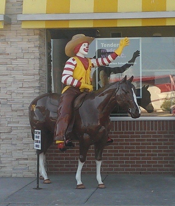 Jon was pleased to find Ronald McDonald on a horse — because, why not? — and we wound through Amarillo and eastward.