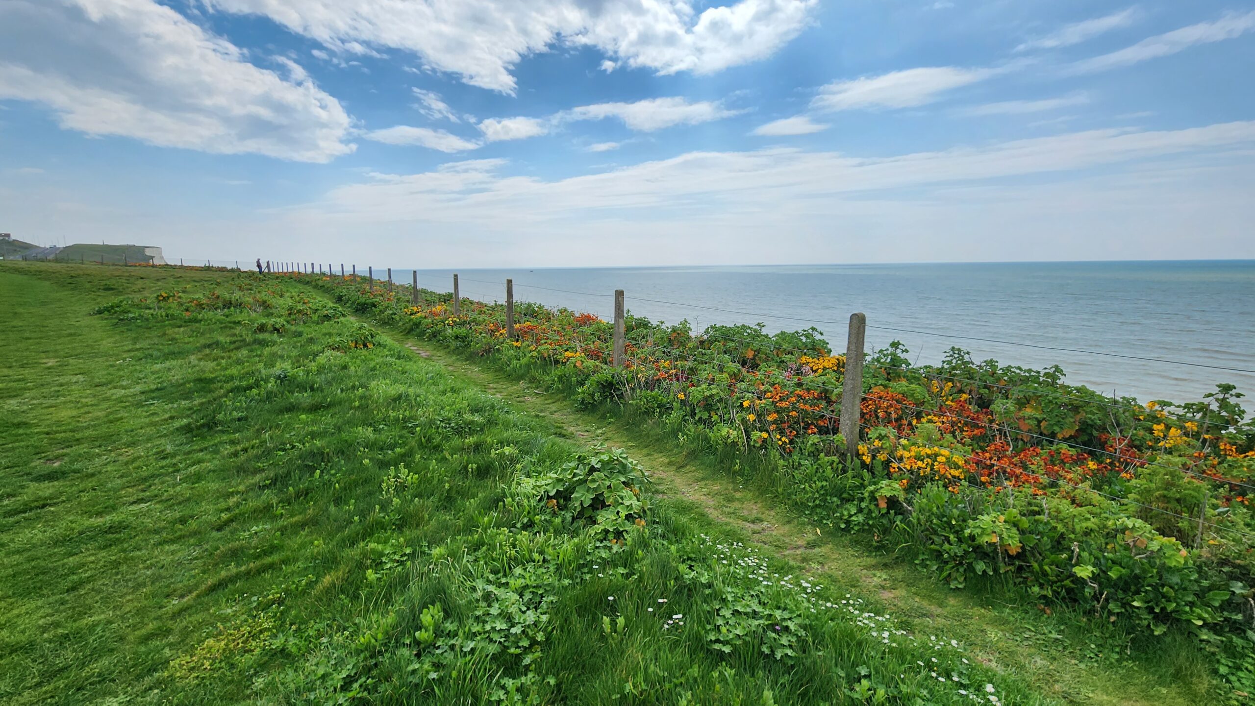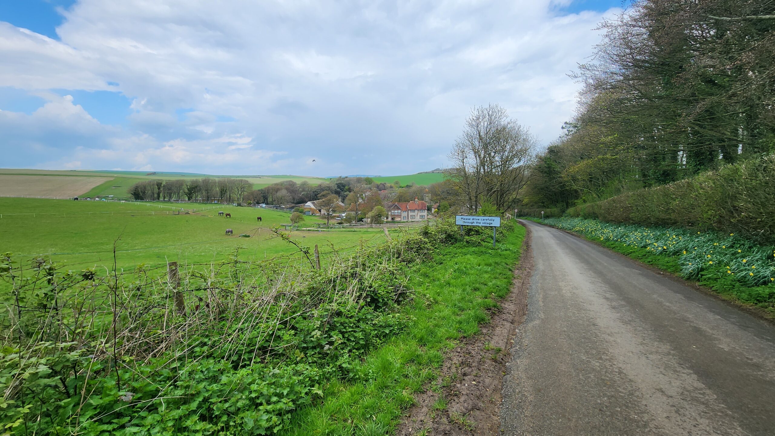 Because I was terribly behind in my training for an upcoming half-marathon, I went out our first day for a long walk, despite the threat of rain. I went along the beachwalk, then the undercliff, and the up the chalk cliffs and over the downs on a country tramp through tiny villages and a national park.