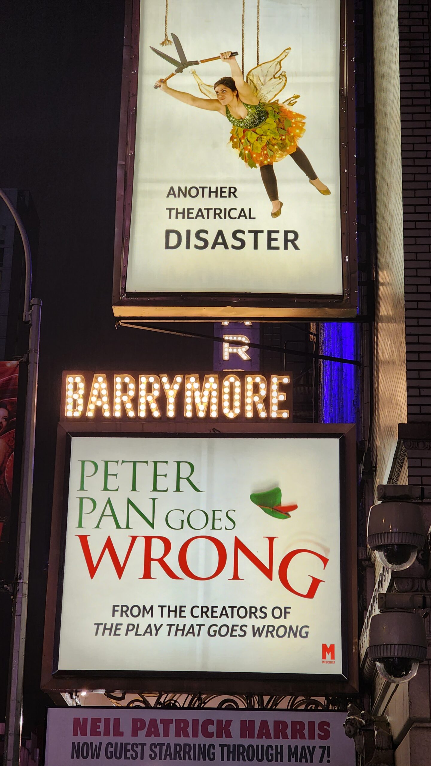 We got off the train and found a café, where we got breakfast and made new plans. We couldn’t return to London; the London Marathon had made hotel rooms nearly impossible to get even well in advance, and there’d be nothing available the day of. Flying directly home would also be a challenge; the marathon hosts tens of thousands of entrants, many international, and now hundreds of would-be cruisers also needed what few tickets might remain. Besides, we had Broadway tickets for New York that could not be exchanged, including for Mischief’s Peter Pan Goes Wrong (you’ve heard me talk about Mischief before), with limited time guest star Neil Patrick Harris. After some time, I found an affordable flat available, and we hopped a new train.